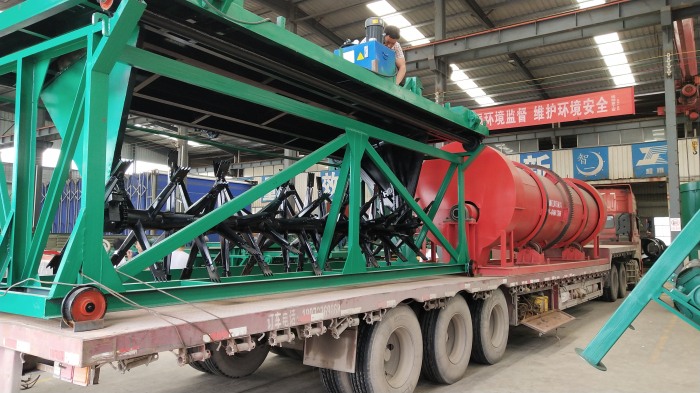 查看 > 20 2020/11由于該豬糞秸稈有機(jī)肥料生產(chǎn)線產(chǎn)量較大,因此分為多車裝置運(yùn)輸。主要的豬糞加工設(shè)備有:大型秸稈粉碎機(jī)、履帶式翻堆機(jī)、臥式攪拌機(jī)、新型三合一造粒機(jī)、不同型號(hào)的滾筒篩分機(jī)以及多個(gè)型號(hào)的烘干冷卻設(shè)備。滾筒烘干設(shè)備風(fēng)頭以及風(fēng)機(jī)安置熱風(fēng)爐以及冷卻設(shè)備多個(gè)烘干冷卻設(shè)備履帶式翻堆機(jī)以及大型秸稈粉碎機(jī)二次烘干設(shè)備滾筒篩分機(jī)以及鏟車喂料倉本次豬糞秸稈有機(jī)肥料生產(chǎn)線工藝設(shè)計(jì)流程為:利用大型秸稈粉碎機(jī)將稻草秸稈等粉碎均勻,