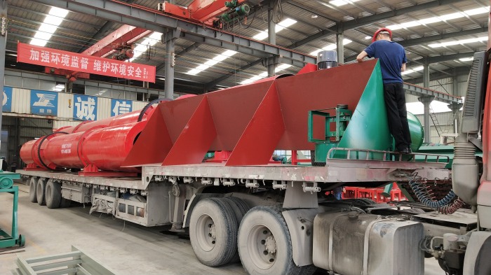 查看 > 01 2021/03本次發(fā)貨的豬糞有機(jī)肥生產(chǎn)線主要設(shè)備有:鏟車喂料、臥式攪拌機(jī)、有機(jī)肥濕法造粒機(jī)、滾筒篩分機(jī)以及烘干設(shè)備。BB肥攪拌機(jī)作為拋圓設(shè)備使用