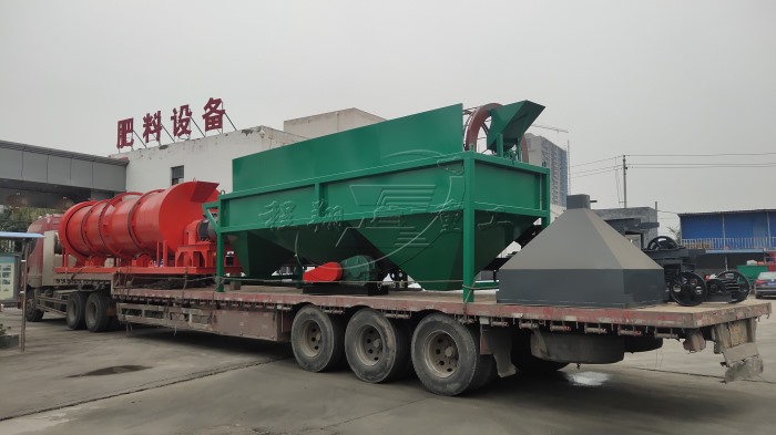 查看 > 20 2020/11由于該豬糞秸稈有機肥料生產(chǎn)線產(chǎn)量較大,因此分為多車裝置運輸。主要的豬糞加工設(shè)備有:大型秸稈粉碎機、履帶式翻堆機、臥式攪拌機、新型三合一造粒機、不同型號的滾筒篩分機以及多個型號的烘干冷卻設(shè)備。滾筒烘干設(shè)備風(fēng)頭以及風(fēng)機安置熱風(fēng)爐以及冷卻設(shè)備多個烘干冷卻設(shè)備履帶式翻堆機以及大型秸稈粉碎機二次烘干設(shè)備滾筒篩分機以及鏟車喂料倉本次豬糞秸稈有機肥料生產(chǎn)線工藝設(shè)計流程為:利用大型秸稈粉碎機將稻草秸稈等粉碎均勻,