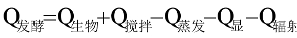 發(fā)酵過程中,隨著菌體對培養(yǎng)基的利用以及機械攪拌的作用,將產(chǎn)生一定的熱量。同時因罐壁散熱、水分蒸發(fā)等也帶走部分熱量。因此,可用發(fā)酵熱來代表整個發(fā)酵過程中釋放出來的凈熱量[J/(m3·h)]表示: