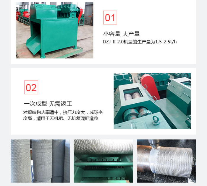 3)設(shè)備特性:不但節(jié)能降耗,而且與其它方法相比,不需要燃油、燃?xì)獾雀稍锎胧T撔滦蛯?duì)輥擠壓造粒設(shè)備,無(wú)需另外添加粘合劑。