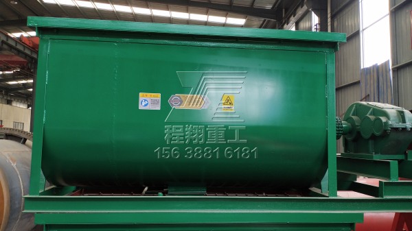 4、混合攪拌:臥式攪拌機(jī),主要起到均勻攪拌的作用,主要方便后期的造粒,有利于顆粒營養(yǎng)元素分布均勻,也起到均勻給料的作用。