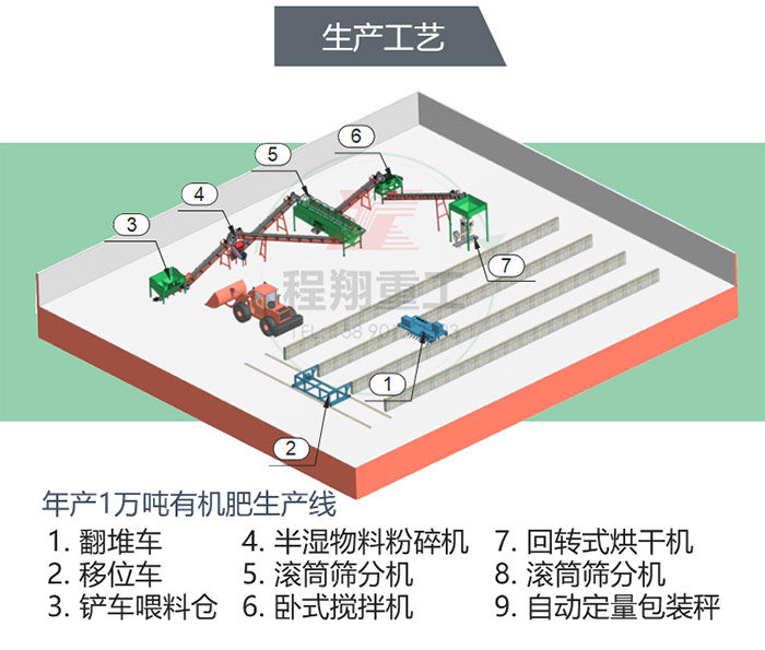 查看 > 13 2020/10本次發(fā)貨的設(shè)備是程翔重工是為江西某客戶定制的,簡單的年產(chǎn)1萬噸雞糞有機(jī)肥生產(chǎn)線,主要設(shè)備有:鏈?zhǔn)椒鬯闄C(jī)、滾筒篩分機(jī)、濕法攪齒造粒機(jī)、鏟車喂料倉以及自動包裝秤。改雞糞生產(chǎn)線的工作流程為:發(fā)酵——粉碎——攪拌——造粒——篩分——包裝運(yùn)輸1.發(fā)酵是第一步,畜禽糞便含有大量病蟲卵,需要進(jìn)