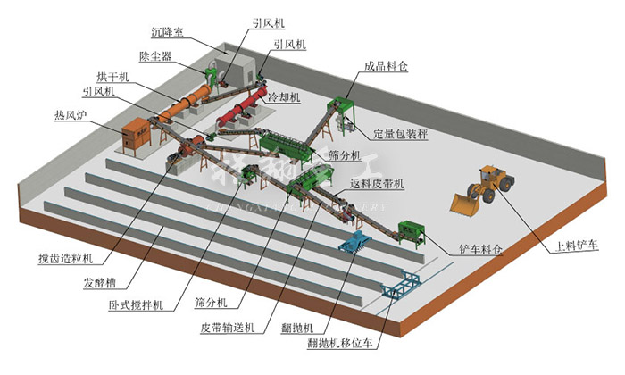 查看 > 20 2020/11由于該豬糞秸稈有機肥料生產(chǎn)線產(chǎn)量較大,因此分為多車裝置運輸。主要的豬糞加工設(shè)備有:大型秸稈粉碎機、履帶式翻堆機、臥式攪拌機、新型三合一造粒機、不同型號的滾筒篩分機以及多個型號的烘干冷卻設(shè)備。滾筒烘干設(shè)備風(fēng)頭以及風(fēng)機安置熱風(fēng)爐以及冷卻設(shè)備多個烘干冷卻設(shè)備履帶式翻堆機以及大型秸稈粉碎機二次烘干設(shè)備滾筒篩分機以及鏟車喂料倉本次豬糞秸稈有機肥料生產(chǎn)線工藝設(shè)計流程為:利用大型秸稈粉碎機將稻草秸稈等粉碎均勻,