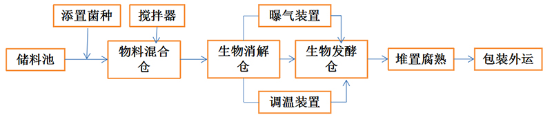 本著程序少、操作性強及用工少的原則,主要在“一池兩倉”中進(jìn)行,“一池”指的是儲料池,“兩倉” 分別是指物料混合倉和生物消解發(fā)酵倉。