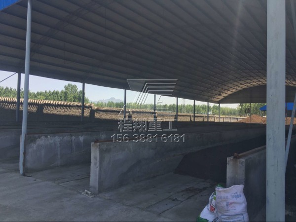 ④移動(dòng)翻拋發(fā)酵加工法。該工藝是在溫室式發(fā)酵車間內(nèi),沿軌道連續(xù)翻耕動(dòng)拌好菌劑的畜禽糞便,使其發(fā)酵、脫臭,牲畜禽糞便從發(fā)酵車間一端進(jìn)入,出來時(shí)便為發(fā)酵好的有機(jī)肥,并直接進(jìn)入干燥設(shè)備脫水,成為商品有機(jī)肥。該生產(chǎn)工藝充分利用光能、發(fā)酵熱,設(shè)備簡(jiǎn)單,運(yùn)轉(zhuǎn)成本低。其主要設(shè)備有翻拋機(jī)、溫室、干燥筒、翻斗車等。