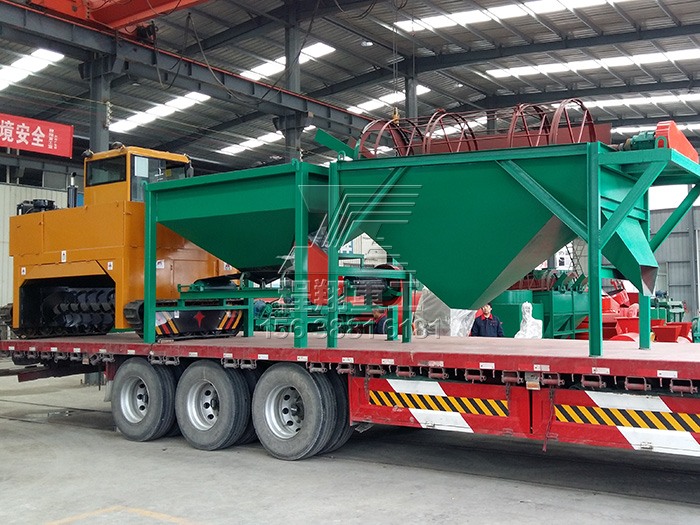 查看 > 20 2020/11由于該豬糞秸稈有機(jī)肥料生產(chǎn)線產(chǎn)量較大,因此分為多車裝置運(yùn)輸。主要的豬糞加工設(shè)備有:大型秸稈粉碎機(jī)、履帶式翻堆機(jī)、臥式攪拌機(jī)、新型三合一造粒機(jī)、不同型號(hào)的滾筒篩分機(jī)以及多個(gè)型號(hào)的烘干冷卻設(shè)備。滾筒烘干設(shè)備風(fēng)頭以及風(fēng)機(jī)安置熱風(fēng)爐以及冷卻設(shè)備多個(gè)烘干冷卻設(shè)備履帶式翻堆機(jī)以及大型秸稈粉碎機(jī)二次烘干設(shè)備滾筒篩分機(jī)以及鏟車喂料倉(cāng)本次豬糞秸稈有機(jī)肥料生產(chǎn)線工藝設(shè)計(jì)流程為:利用大型秸稈粉碎機(jī)將稻草秸稈等粉碎均勻,